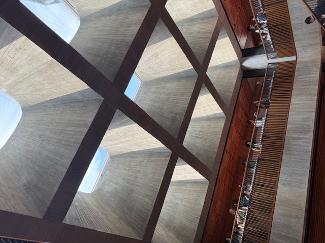 この建築は、ガラス・コンクリート・木材が用いられたブルータルなものとなっていて